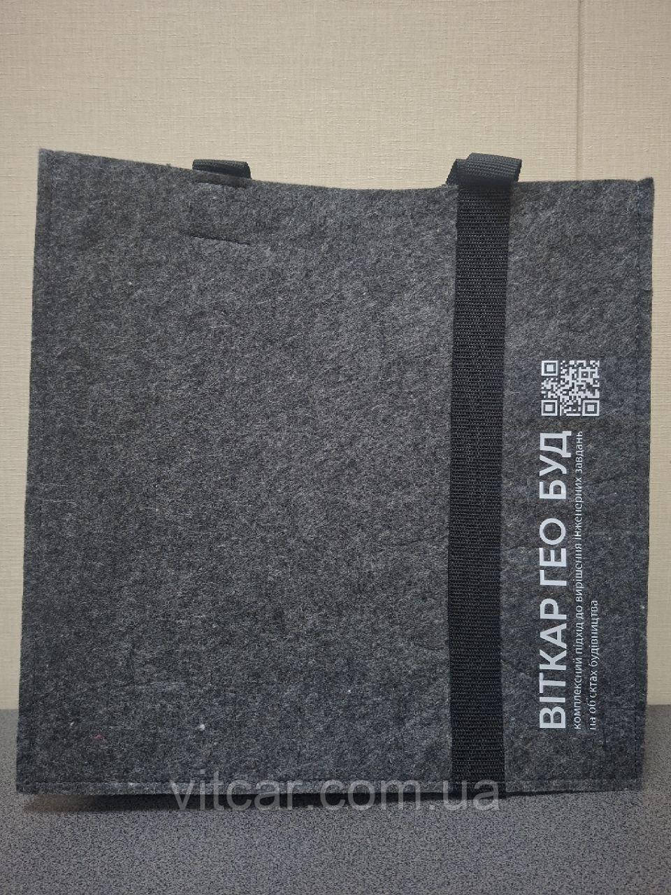 Геотекстильний шопер — сучасна альтернатива пластиковим пакетам. Він витримує великі навантаження, легко очищується та довго зберігає форму і привабливий вигляд. Логотип підкреслює надійність і професійність компанії «Віткар Гео Буд».